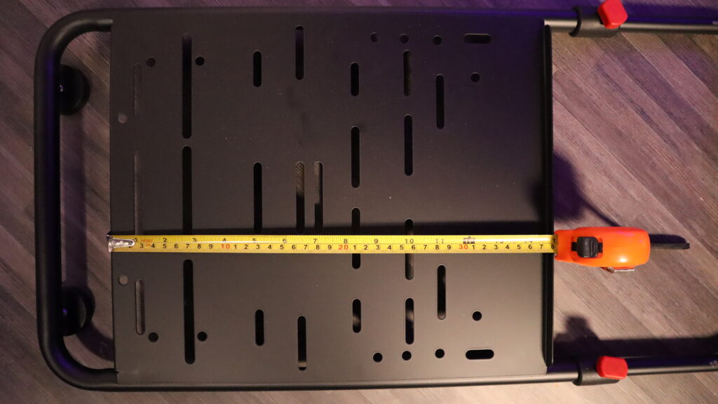 - The wheel tray itself has 10 cm of horizontal travel with pre-drilled holes for positioning.