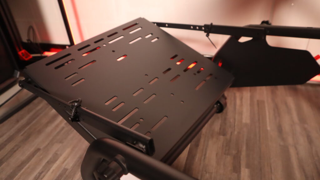 Considering the amount of adjustability built into the system, the rigidity is genuinely impressive. I would confidently describe this as one of the most rigid wheelbase mounts I’ve experienced on a foldable cockpit.